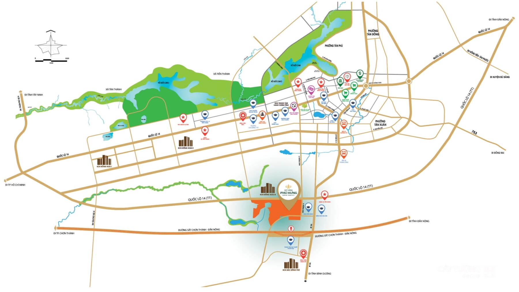 Tọa lạc tại mặt tiền QL.14 – con đường huyết mạch Bắc – Nam, từ Khu Đô Thị Phức Hợp Cảnh Quan – Cát Tường Phú Hưng dễ dàng di chuyển đi TP. HCM, Bình Dương, Đồng Nai, Tây Ninh thông qua hệ thống hạ tầng giao thông xuyên suốt như: đường QL.14, QL.13, ĐT.741, ĐT.752, ĐT.753, ĐT.754, Cao tốc Mỹ Phước – Tân Vạn…