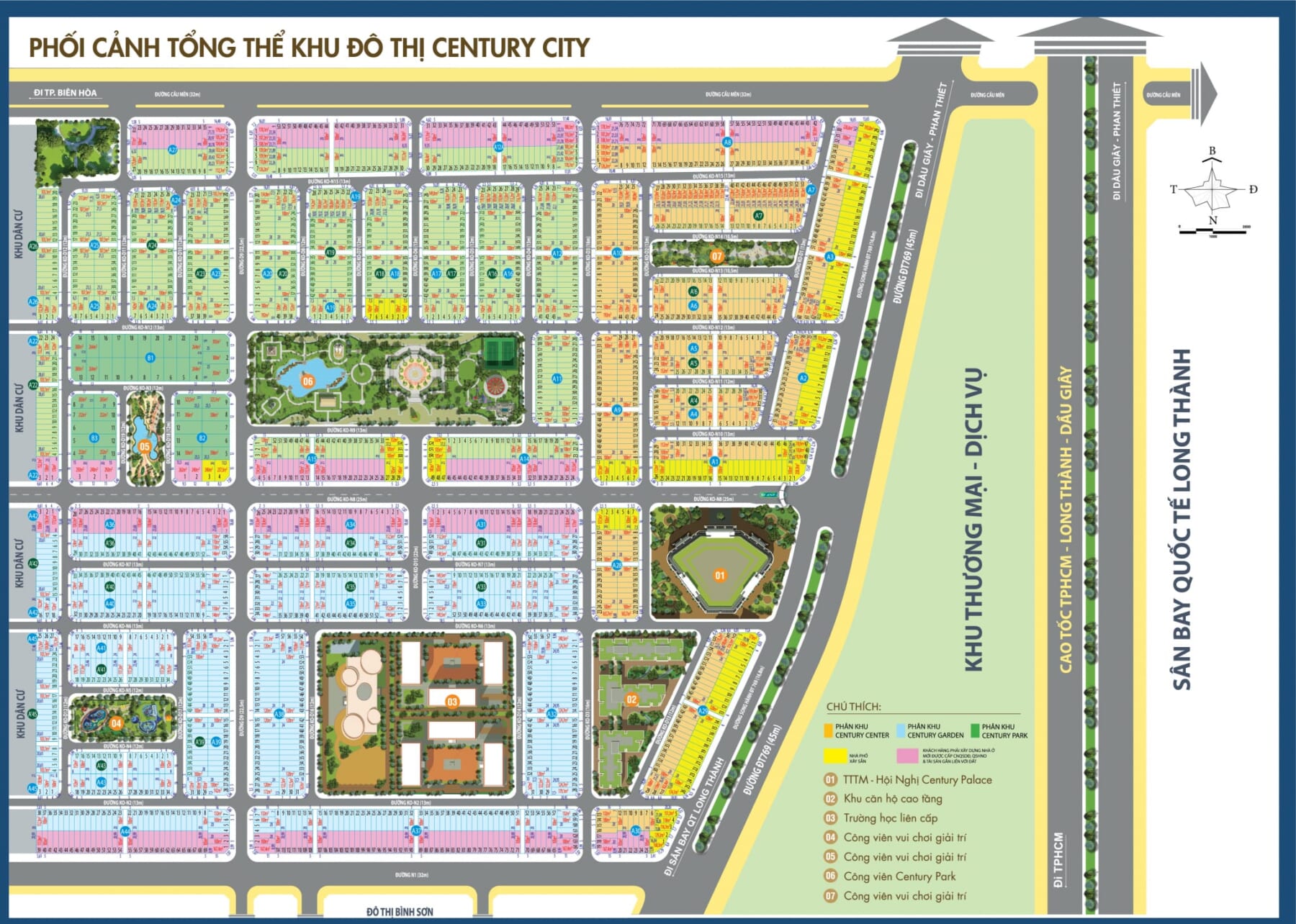 Century City Long Thành là khu đô thị đẳng cấp thuộc vùng chiến lược phát triển “thành phố sân bay”. Được quy hoạch với ba phân khu hiện đại: Century Center, Century Park và Century Garden. Bên trong dự án bao gồm các tiện ích đẳng cấp như hệ thống trường học quy mô 2,7 ha từ mầm non đến THCS, trung tâm thương mại – hội nghị 1,2 ha.