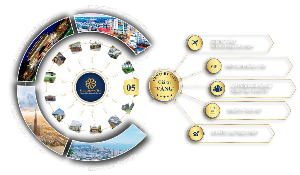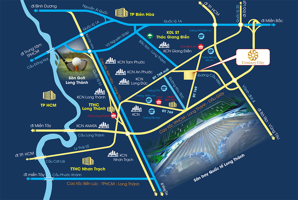 Đặc biệt, Century City nằm ngay tâm điểm giao thương nối đại lộ Bắc Sơn – Long Thành xuyên suốt đến sân bay quốc tế Long Thành. Đây là tuyến đường quy hoạch phát triển vận chuyển, thương mại – dịch vụ cao cấp như là một biểu tượng thịnh vượng của “thành phố sân bay”.