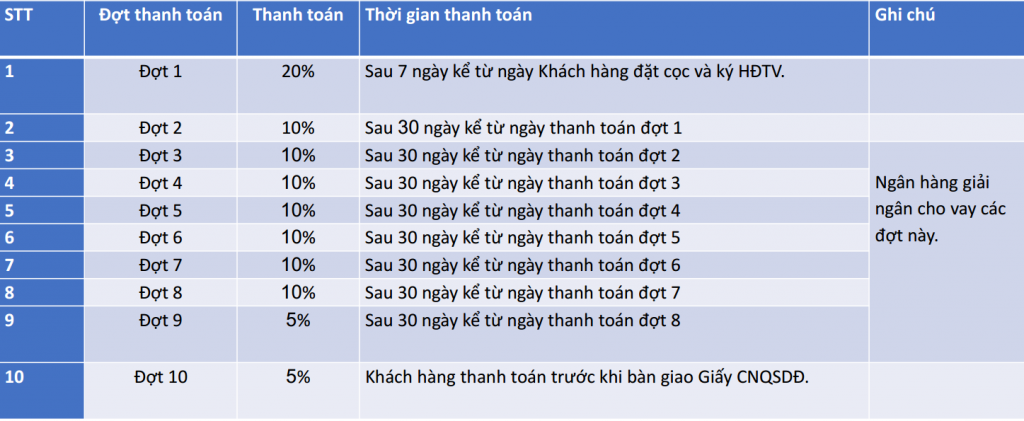 LƯU Ý: Chiết khấu đối với các trường hợp khách hàng vay ngân hàng chỉ áp dụng khi ngân hàng giải ngân một lần