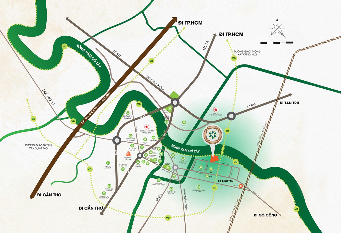 Với vị trí nút giao giữa hai vùng động lực kinh tế phát triển: TP. Hồ Chí Minh và Đồng Bằng Sông Cửu Long, giá trị Taka Garden càng thêm thăng hạng khi liền kề các trục giao thông liên vùng huyết mạch như: Quốc Lộ 1A, Quốc lộ 62, Vành đai TP. Tân An, Vành đai 3, Vành đai 4, Cao tốc TP. HCM – Trung Lương, Cao tốc Bến Lức – Long Thành, đường sắt TP. HCM – Cần Thơ,…