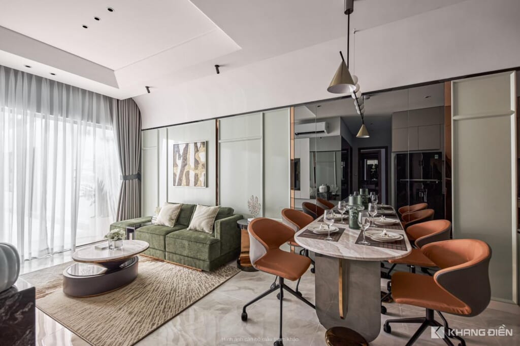 Phòng khách, phòng ăn được bố trí hợp lý, rộng thoáng, đảm bảo ánh sáng, thông gió tự nhiên